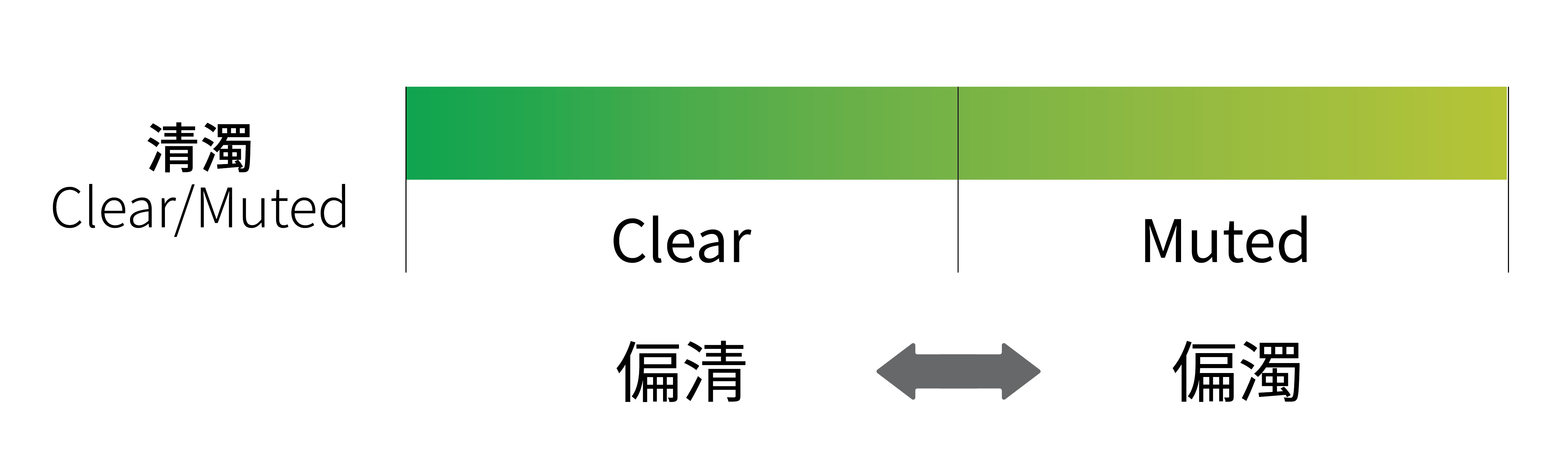 你的最佳色彩是偏清透明亮,還是偏柔霧沉穩? 「清濁」指的是顏色中是否含有灰色成分,影響色彩呈現的透明度與質感。